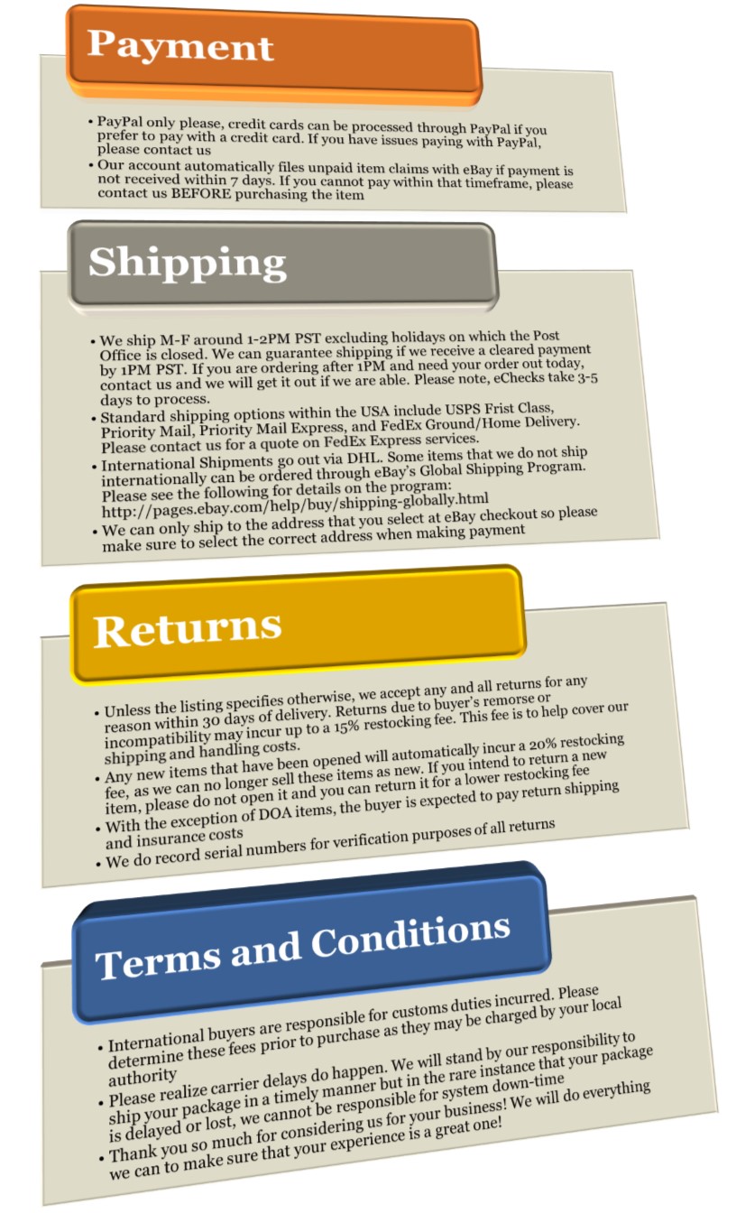 Central Valley Computer Parts, Inc. has been in business since 10. What started as a home business and hobby 7 years ago has since grown into a full-blown business supporting 10 team members! We operate out of a warehouse in Ripon, California and strive to provide the best customer service we can. We hope to serve you for many years to come! |